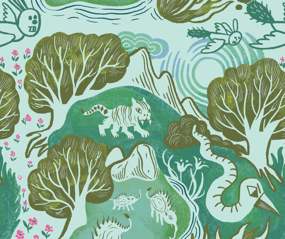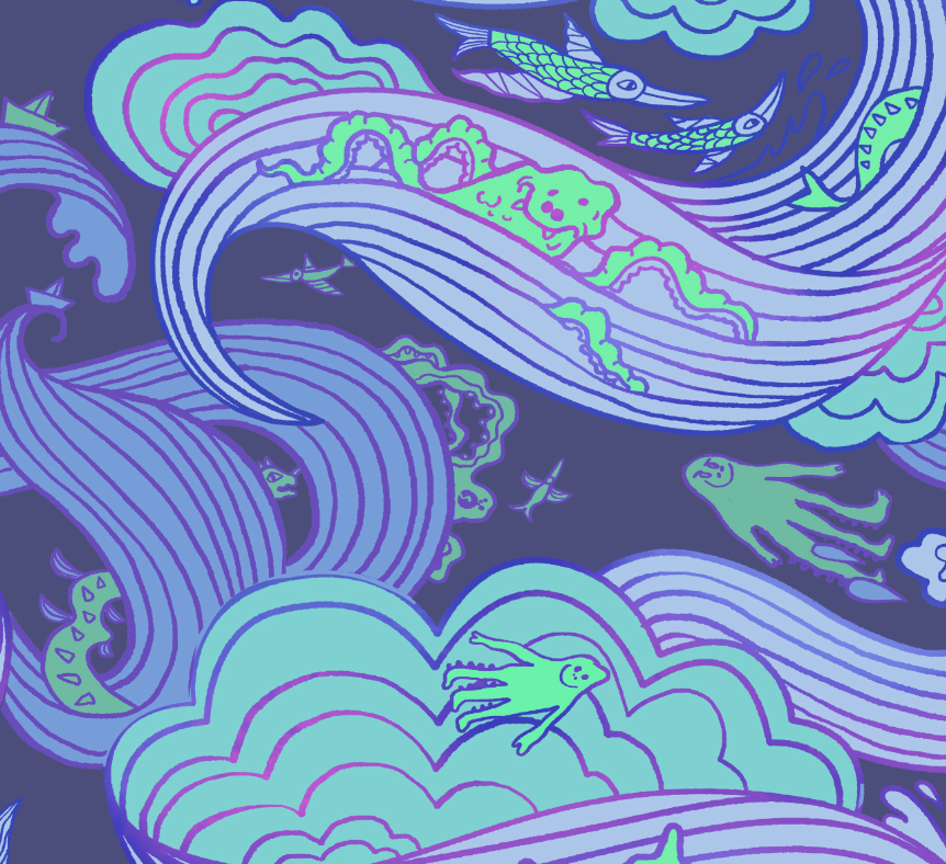 Surface Designs, for an imagined stationery brand, with fantasy land and sea creatures. Possible applications would include gift wrapping, stationery and fabric. This fun assignment was created at the Savannah College of Art and Design