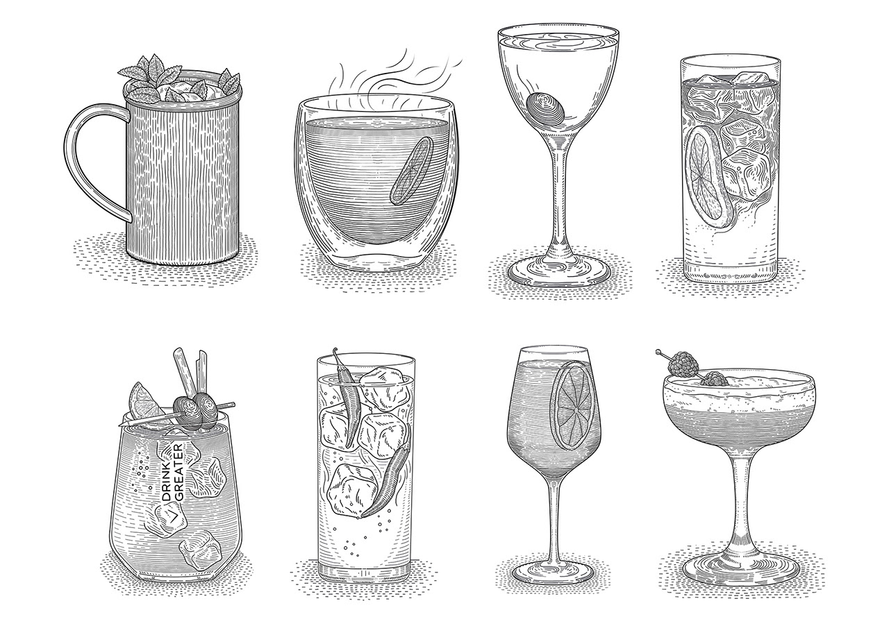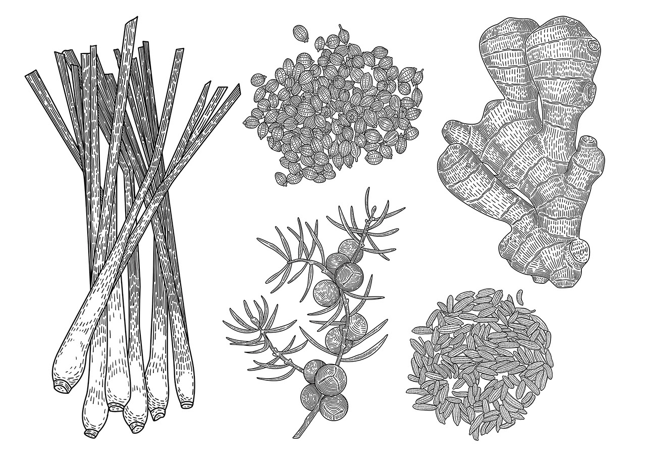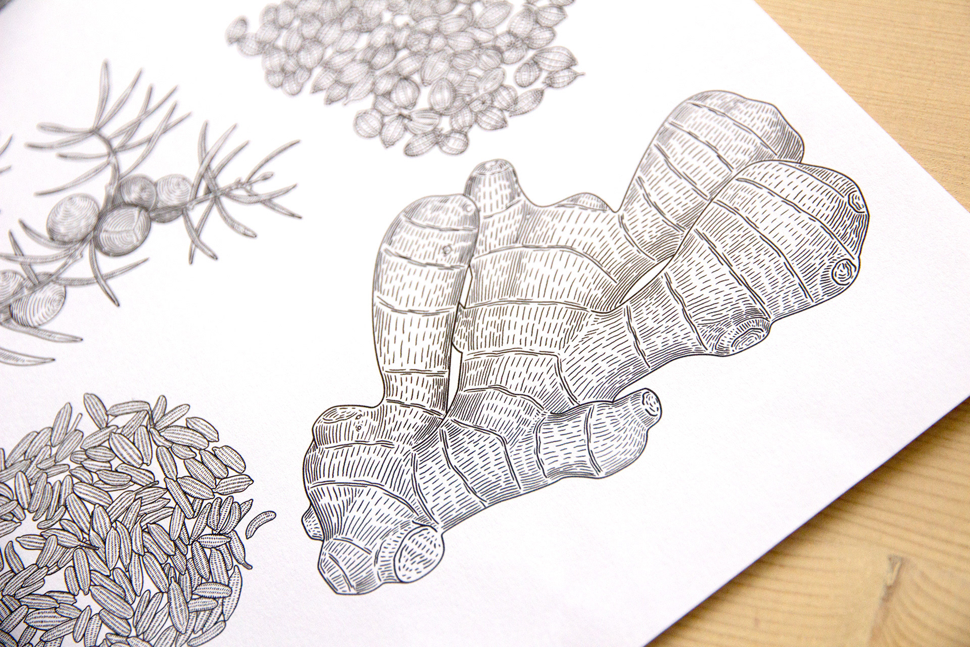 Engraving style visual Assets created for the Greater Than Gin Universe.