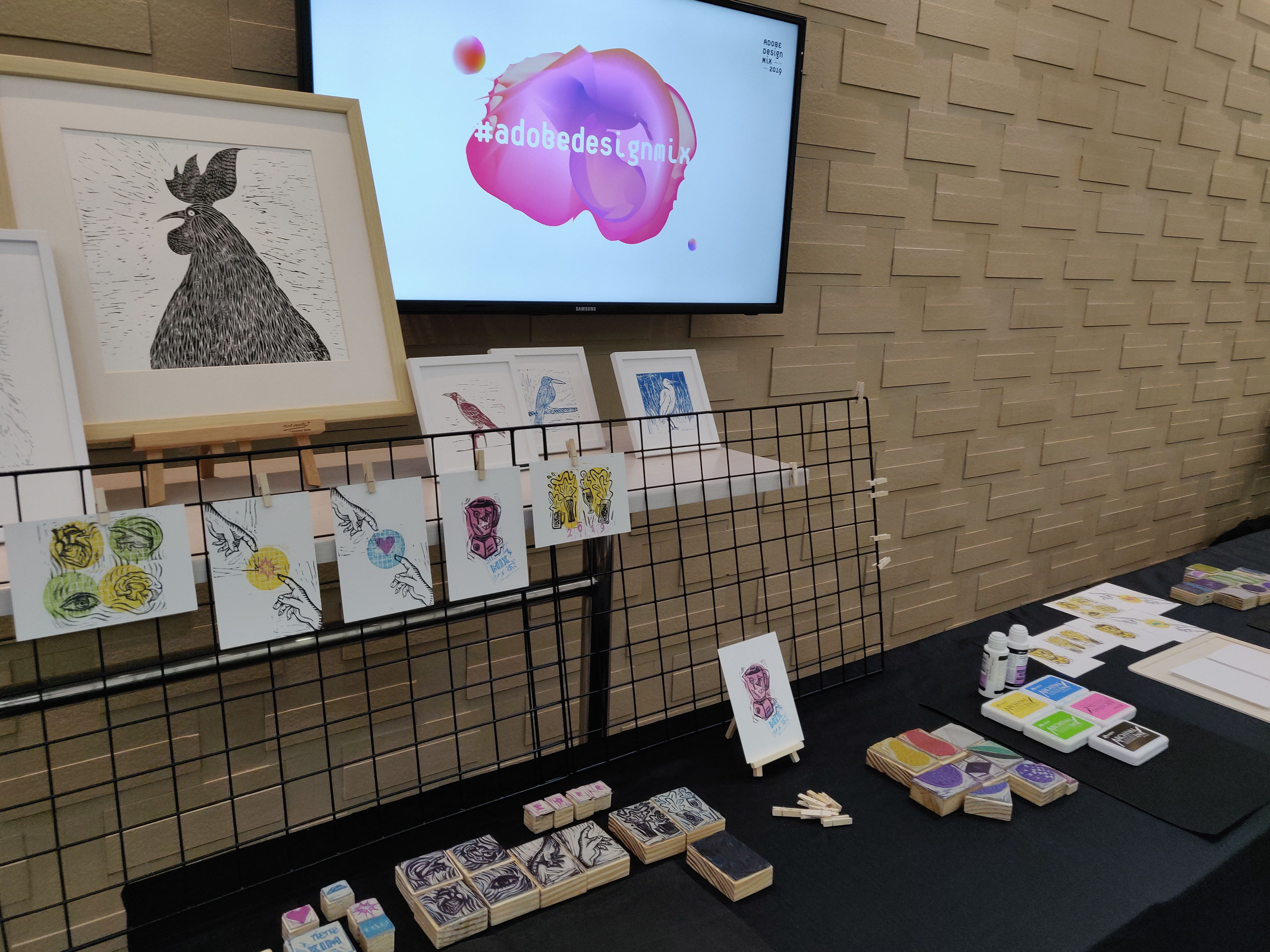 The Adobe Design Mix, Adobe India's very first design event was an opportunity for designers, engineers, managers and researches to learn and engage with each other outside the purview of their regular work. I conducted a linocut workshop for the 'Print and Post' booth and hand-carved custom stamps based on the theme of 'co-creation' for attendees to print on souvenir postcards. Concept and art direction by Shivi Pal